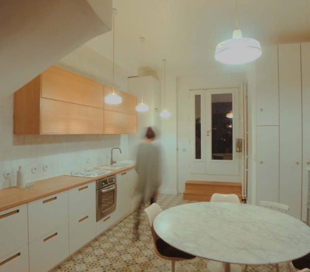 Transformer une cuisine existante très présente en une cuisine discrète qui vient se fondre avec l’environnement